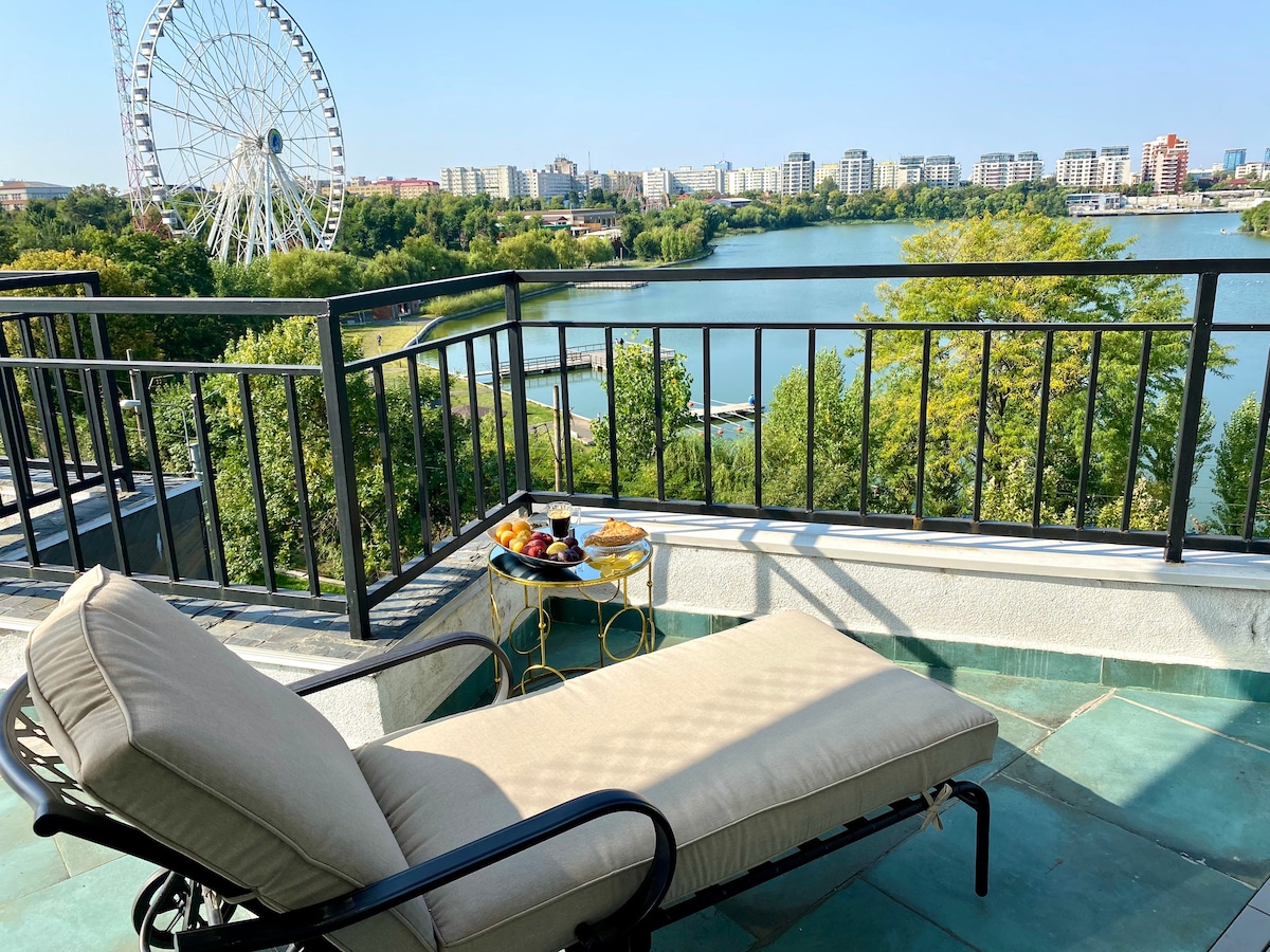 도심에서 호수와 공원 전망을 감상할 수 있는 고급 펜트하우스
