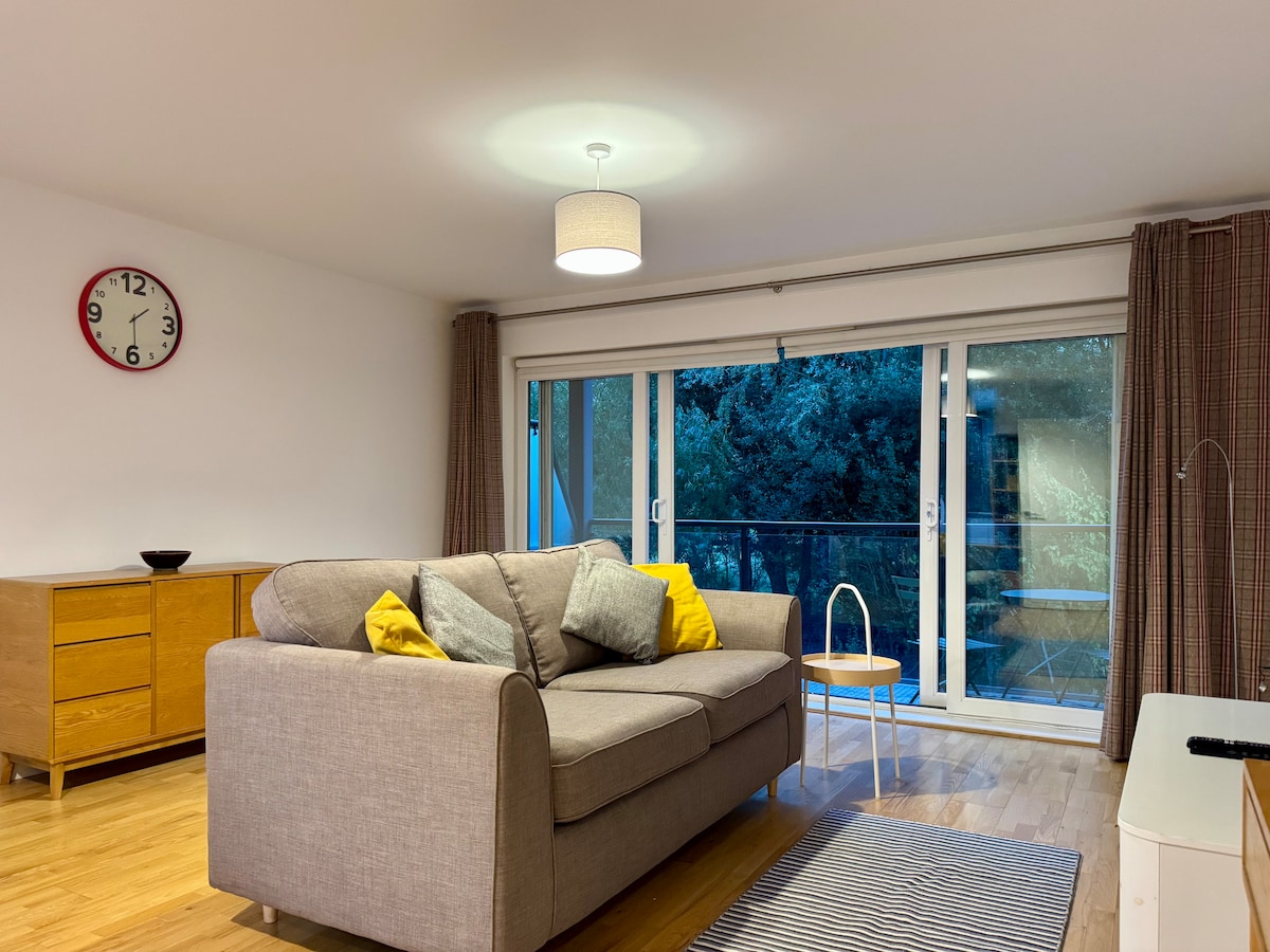 매력적이고 중심부에 위치하며 평화롭고 우아한 1층 아파트로 커뮤니티 과수원으로 연결됩니다. 더블 침실 1개 + 거실에 있는 더블 소파 베드 1개. 무료 주차장. 대부분의 직통 노선으로 시내 중심가까지 도보로 15분 거리에 있으며, 대학 보트 하우스 옆에 있는 미드서머 커먼의 강변에서 25분 거리에 있습니다. 장기 또는 단기 휴가에 필요한 모든 것을 갖춘 완벽한 현대적인 휴양지. 예약하시면 케임브리지에 대한 훌륭한 작은 가이드를 보내드립니다.