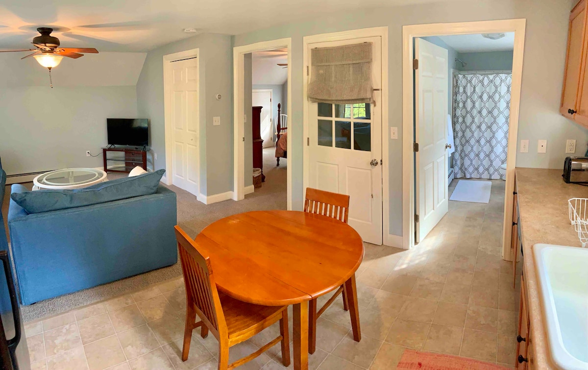 Cozy studio apartment in a quiet, wooded setting in Tolland, CT—just minutes from I-84 and 15 minutes to UConn. Sleeps 2–4 with a queen bed and optional mattress. Includes full kitchen, bathroom, fast Wi-Fi, private entrance, and easy self check-in. Free Level 2 EV charging and plenty of parking. Ideal for short or extended stays. No pets, no smoking, no parties.