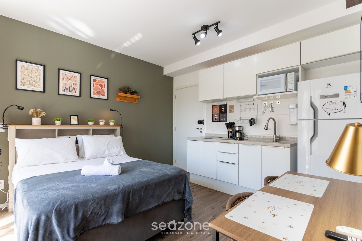 오스카 프레이레 거리의 고급 스튜디오 고급 상점들로 유명한 상파울루의 가장 유명한 거리에 위치한 현대적이고 세련되고 완벽한 스튜디오. 24층에 위치한 스튜디오, 파울리스타 거리의 멋진 전망을 볼 수 있습니다. 55인치 TV, 와이파이 인터넷 Vivo Fibra 200, 케이블 TV, 조용한 에어컨, 커피 메이커, 쿡탑 및 미니바, 자동 암막 커튼, 휴대용 옷 스팀 기기, 주방 기구, 헤어 드라이어, 부드러운 시트 및 수건, 비누 및 샴푸/컨디셔너 키트가 갖춰진 숙소입니다.