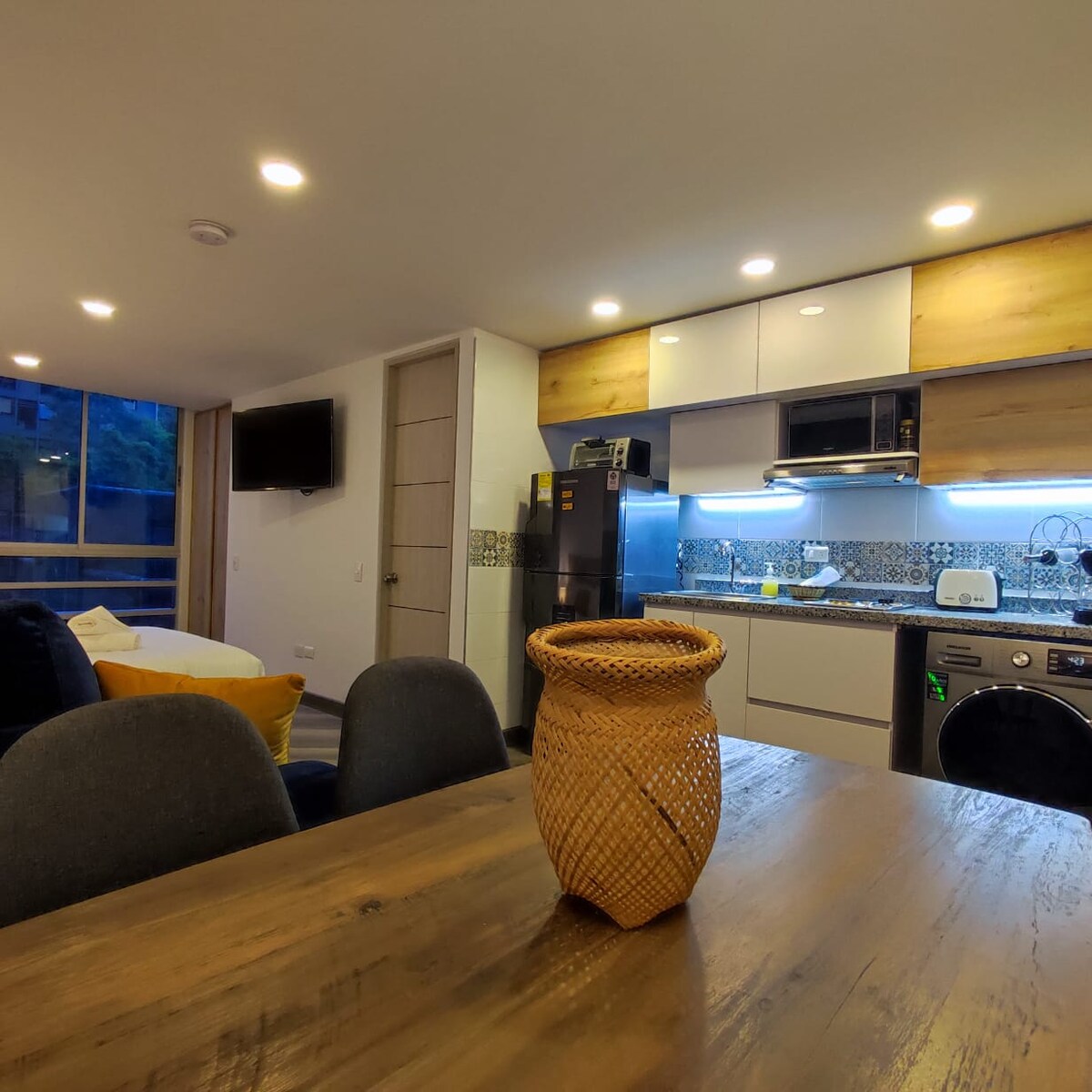 더블 침대, TV, 책상, 소파, 옷장, 전용 욕실, 주방이 있는 아늑한 아파트로 게스트가 사용하는 데 필요한 모든 기구와 가전제품이 갖춰져 있습니다. 모두 새것입니다. 이 숙소는 보고타의 주요 관광지가 있는 역사적이고 국제적인 중심지 근처의 중심가에 위치해 있습니다. 쉽게 접근할 수 있는 도로와 공항 및 교통 터미널과 도심을 연결하는 대중 교통 시스템을 갖추고 있습니다.