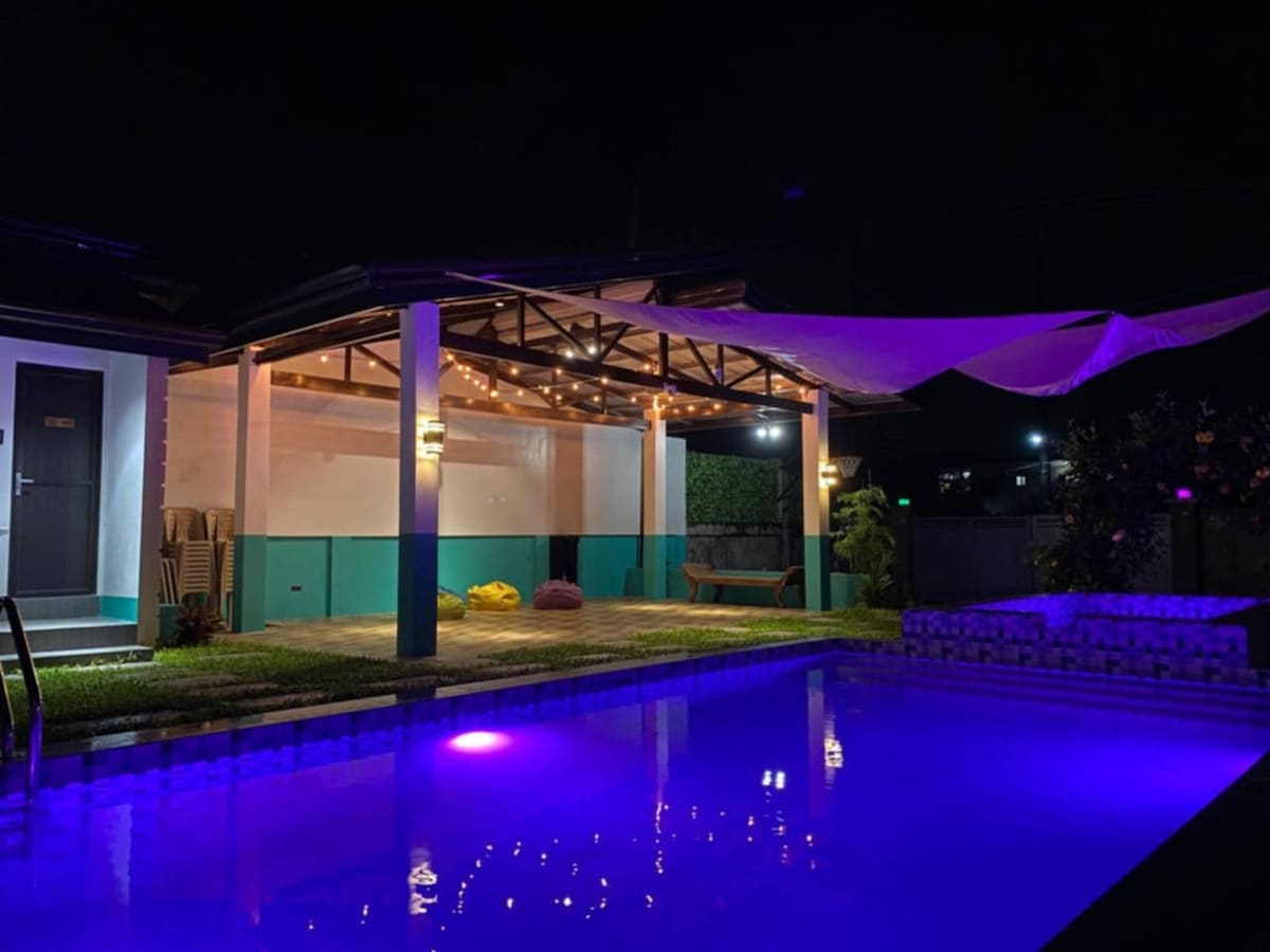 산기슭에 위치한 편안하고 넓은 숙소에서 휴식을 취하고 긴장을 푸세요. 마킬링. 이 숙소에는 시설이 완비된 주방, 와이파이, 넓은 잔디밭, 농구 코트(배드민턴 코트로도 사용됨), 수영장, 정자, 안전한 주차 공간이 있습니다. 자연의 고요함을 즐기고 싶다면 UPLB를 향해 잼보리 로드를 따라 하이킹, 조깅, 자전거를 즐겨보세요.