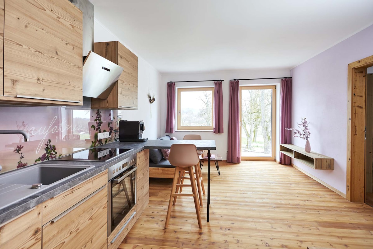 Mitternschlag의 Landhaus Ameisberg에 있는 홀리데이 플랫은 산의 멋진 전망을 자랑합니다. 숙소는 거실, 더블 침대가 있는 침실 2개, 2인용 소파베드가 있는 갤러리, 식기세척기가 잘 갖춰진 주방, 욕실, 게스트 화장실로 구성되어 있어 6인용 공간을 제공합니다. 시설에는 재택근무를 위한 전용 워크스테이션이 있는 초고속 와이파이, 세탁기, 위성 TV, 어린이용 책, 장난감도 포함됩니다. 유아용 침대도 마련되어 있습니다.
