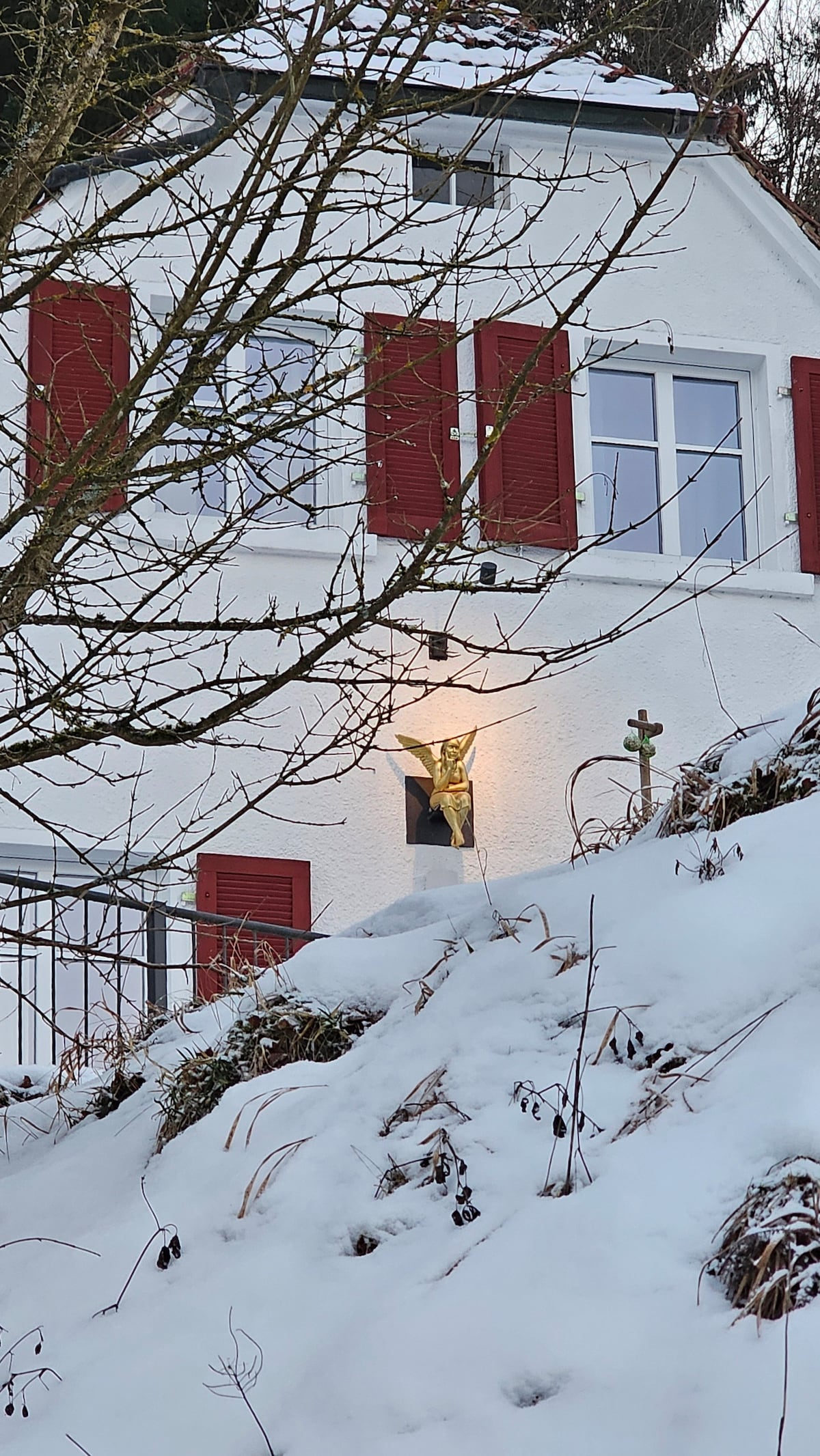 Wenn Sie Angst vor Spinnen haben sollten Sie dieses Häuschen nicht buchen. Wenn Sie gerne im Grünen sitzen oder in der Wiese liegen wollen schon eher. Sie sind umgeben von Bäumen, Büschen, Blumen und Weihern. Die Bundesstraße ist allerdings in Hörweite. Das Häuschen ist ca. 100 Jahre alt und sehr charmant. Nichtsdestotrotz kann man es nicht direkt mit dem Auto anfahren. Die Treppe ins Obergeschoss ist eng und steil. Bad und WC sind im Nebengebäude. Wobei „WC“ Kompostklo bedeutet.