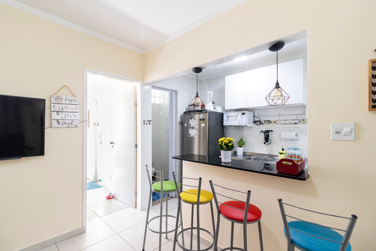 고메 발코니가 있는 아름다운 아파트, 전기 바비큐 그릴, 바다 전망 에어컨이 있는 모든 방. 새로운 건물. 침실 2개 중 하나는 킹사이즈 침대 스위트, 욕실 2개, 마이크로와 에어프라이어가 있는 완비된 주방, TV 2개, 인터넷 및 와이파이. 차고에는 1대의 차량이 주차 가능합니다. 산투스 중심부에 위치한 곤자가 지구의 라이오 1블록 거리에 위치하고 있습니다. 세 개의 쇼핑 센터, 여러 카페 및 레스토랑 근처에 위치하고 있습니다.