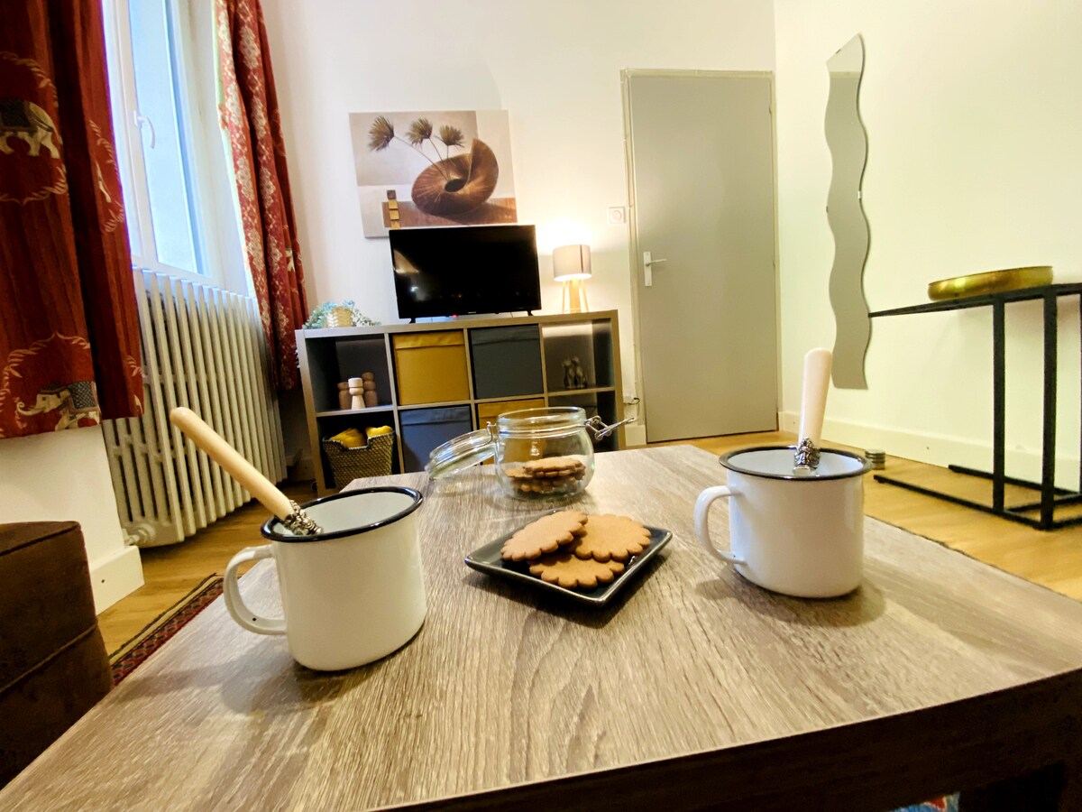 우리지 중심지에서 가까운 곳에 위치한 이 작은 평화의 안식처를 방문하여 잊을 수 없는 숙박을★ 즐기십시오. ★ 맛과 우아함을 갖춘 이 아파트는 보르나베이 르 오에 위치하고 있으며, 온천 치료, 스파 세션, 산악 활동을 찾는 여행객 또는 출장 중인 전문가에게 이상적입니다. 자연 환경, 휴식, 잊을 수 없는 숙박을 위해 이것이 우리가 드리는 약속입니다. 침구와 수건이 제공됩니다.