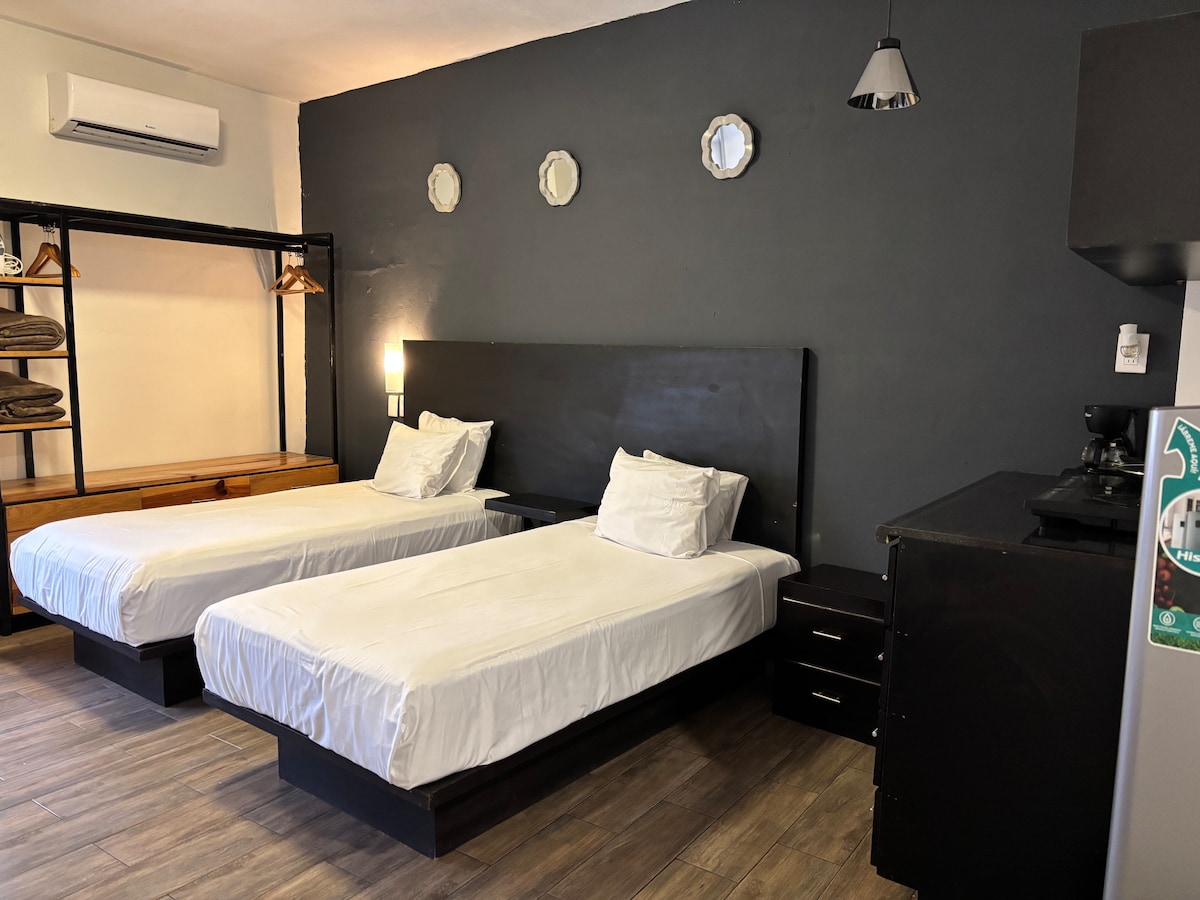 2층의 로프트, 새롭고 독립적이며 편안하고 안전하며, 주차 공간 (오후 8시부터 오전 9시까지), 싱글 침대 2개가 있는 침실 1개, 전기 샤워기가 있는 욕실, 간이 주방 1개, 전기 그릴 1개, 타르자, 커피 메이커, 일부 주방 용품, 부리토 및 다리미, 러브 시트, 32인치 TV-CABLE 스크린, 와이파이 인터넷, 헤어드라이어, 수건, 화장지, 시내에서 5블록, 메인 스트리트에서 가까운 편의시설, 교통, 교회, 상점, 음식, 에어컨!!