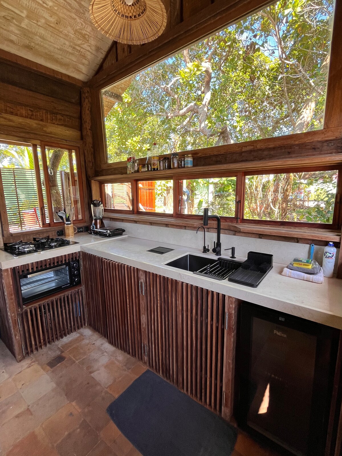 예술 작품으로 가득하고 정자로 열려 있으며, 타워와 남부 바이아의 바다와 숲의 탁 트인 전망을 감상할 수 있는 집입니다. 세라 그란데에서 훌륭한 편안함과 평온함과 함께 예술과 자연을 제공하는 집. 25헥타르 규모의 시골 휴양지 한가운데에 위치하고 있으며, 마을에서 2km, 콘두루 공원에서 4km 거리에 있어 독서, 스포츠, 자연 감상, 요리를 즐기기에 이상적인 장소입니다. 독점적이고 안전합니다. 전용 주방과 넓은 식탁이 정자 앞에 있습니다.