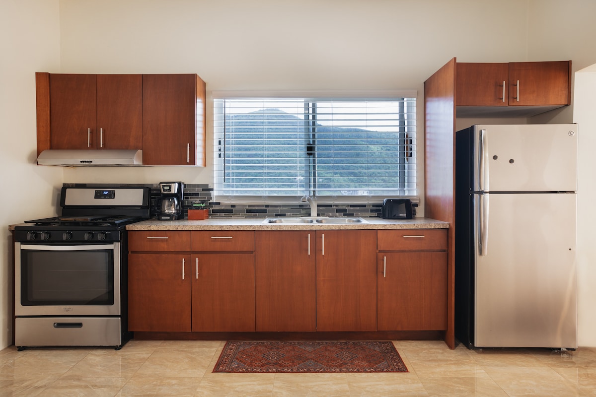 Escape to this stylish, centrally located guest suite on nearly an acre of tropical land with whispering palms and fruit trees. This newly renovated studio includes a full kitchen (with jerk seasoning!) and a tranquil shared patio with BBQ. Breathe in the Caribbean breeze, relax under the stars, and enjoy our 420-friendly property—just no smoking indoors, please. Perfect for couples, solo travelers, or anyone seeking peace, comfort, and an authentic island vibe.