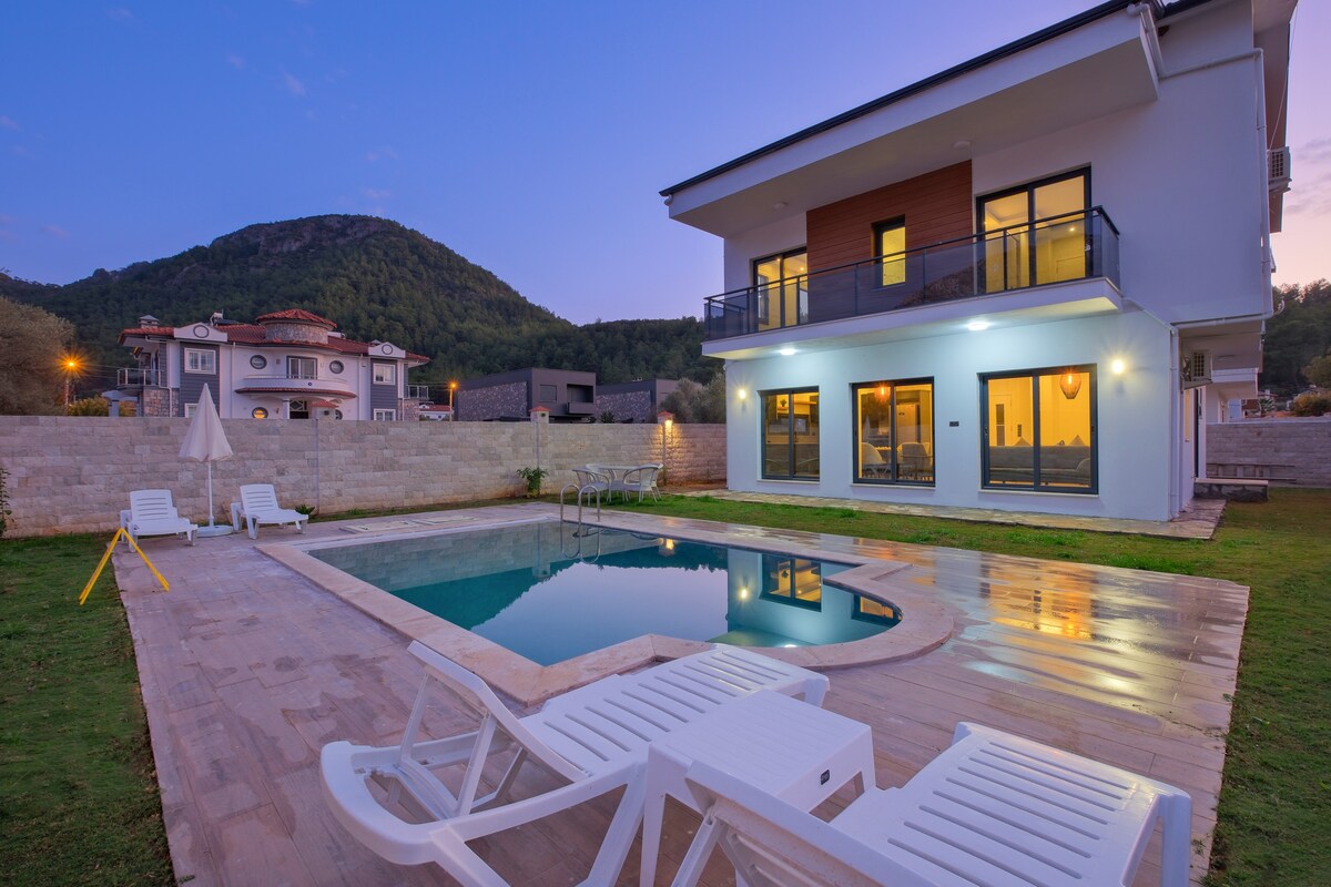 자연에 둘러싸인 페티예에서 특별한 휴가를 보내세요 페티예의 평화로운 분위기에 위치한 1+1은 두 사람을 위한 현대적이고 낭만적인 휴양지입니다. 신혼부부와 특별한 순간을 기억에 남게 만들고 싶은 분들을 위해 설계되었습니다. 도시의 소음에서 멀리 떨어져 있지만 모든 편의시설과 가까운 저희 빌라는 현대적인 인테리어 건축물, 다양한 디자인, 전용 수영장을 갖추고 있어 휴식을 취하고 즐거운 시간을 보내실 수 있습니다. 페티예 시내까지 10킬로미터 15~20분 거리에 있습니다.