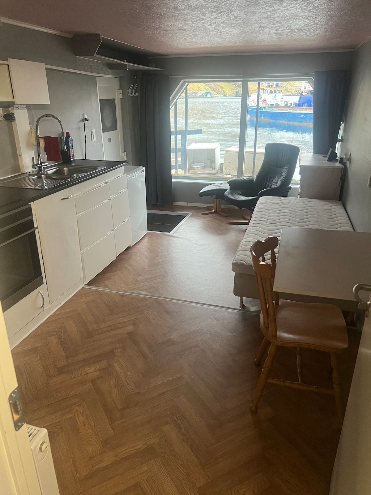Welcome to our cozy traditional Faroese home in Miðvágur! You’ll have the top floor to yourself with two bedrooms, kitchen, and living area. It’s our main home, so it feels lived-in and welcoming. The view of the town and harbor is stunning. The apartment needs a tiny bit of renovation but is fully comfortable for your stay.