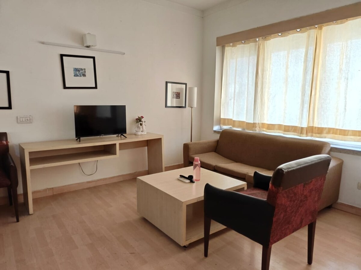 0. 원하는 대로 하세요. 아무도 방해하지 않습니다. 1. Zee5, Hotstar, Prime, Netflix, voot 등과 같은 모든 앱이 포함된 스마트 TV 2. 읽을 수 있는 다양한 책. 3. 발코니 2개가 있는 마스터 침실용 에어컨 4.. 초고속 5G 와이파이 5. 모든 시설이 완비된 주방 6. 세탁기, 냉장고, 전기 주전자, 헤어드라이어 등의 편의시설 7. 체스와 같은 보드게임 8. 잔디 테라스 9. 초고속 제프토 및 조마토 배달 10. 완전히 안전한 숙소