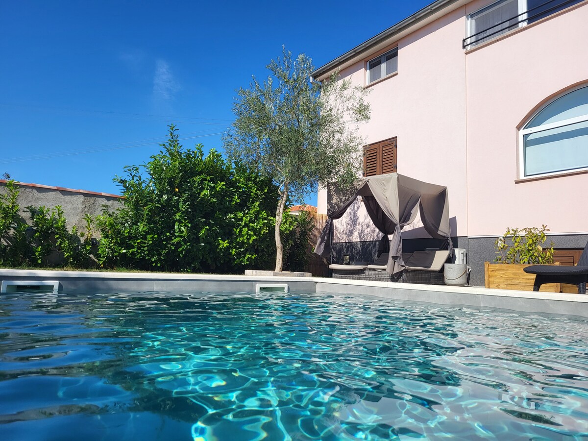 해변에서 1km 이내에 위치한 가족 친화적인 아파트로 2000평방미터의 정원, 여름 파빌리온, 수영장, 바비큐 시설을 갖추고 있어 즐거운 시간을 보내실 수 있습니다. 특히 가족 단위 여행객에게 적합한 숙소이지만 다른 게스트도 환영합니다. 조용한 동네로 둘러싸여 있어 프라이버시를 누릴 수 있습니다 아름다운 유산과 야간 생활을 자랑하는 역사적인 도시 풀라와 파자나 (Pula and Fazana) 가 가까이에 있습니다. 브리주니 국립공원은 파자나에서 보트로 쉽게 이동할 수 있습니다.