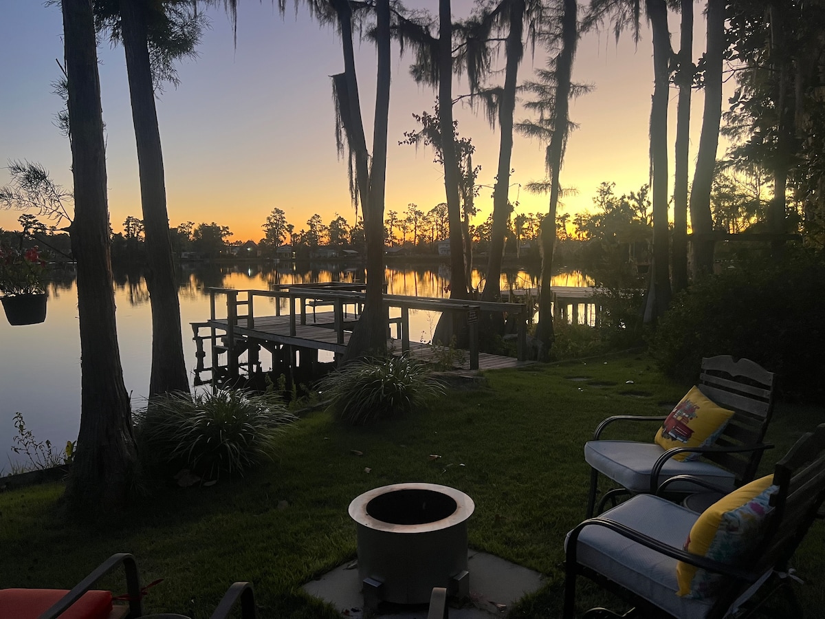 평화로운 오아시스에서 휴식을 취하고 휴식을 취해보세요. 이 새로 리모델링한 아파트는 이끼로 덮인 매그놀리아로 둘러싸여 있으며, 조용한 다이크스 연못에 자리 잡고 있습니다. 호수에 접근이 가능하여 낚시, 야생동물 관찰, 수영 또는 카약을 즐기기에 완벽합니다. 낚시를 하거나 호수 전망을 즐길 수 있는 선착장이 있습니다. 다세대 주택에 있는 이 아파트는 여러분을 위한 것입니다. 탠덤 카약을 이용하실 수 있습니다. * 부두와 외부 공간은 다른 게스트와 함께 사용합니다.