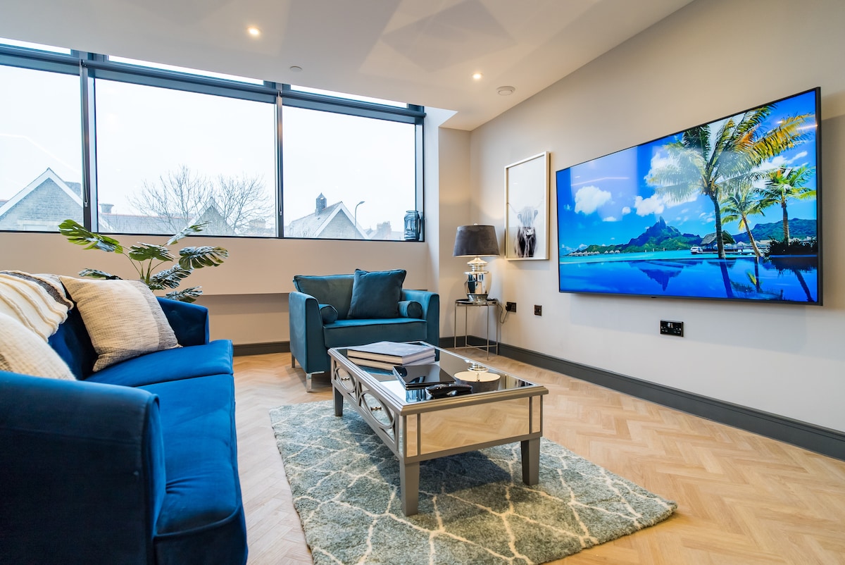 현대적인 스타일과 최고의 편안함이 조화를 이루는 새롭고 아름답게 디자인된 2베드룸 아파트에 오신 것을 환영합니다. 카디프 시내 중심가에서 도보로 10분 거리에 있는 이 우아하게 꾸며진 숙소는 고급스럽고 편리한 숙소를 찾는 출장자, 커플, 친구에게 적합합니다. 모든 객실에 고급 가구, 스마트 TV, 푹신한 슈퍼 킹사이즈 및 킹사이즈 침대를 갖추고 있어 진정한 프리미엄 경험을 선사하기 위해 비용을 아끼지 않았습니다.