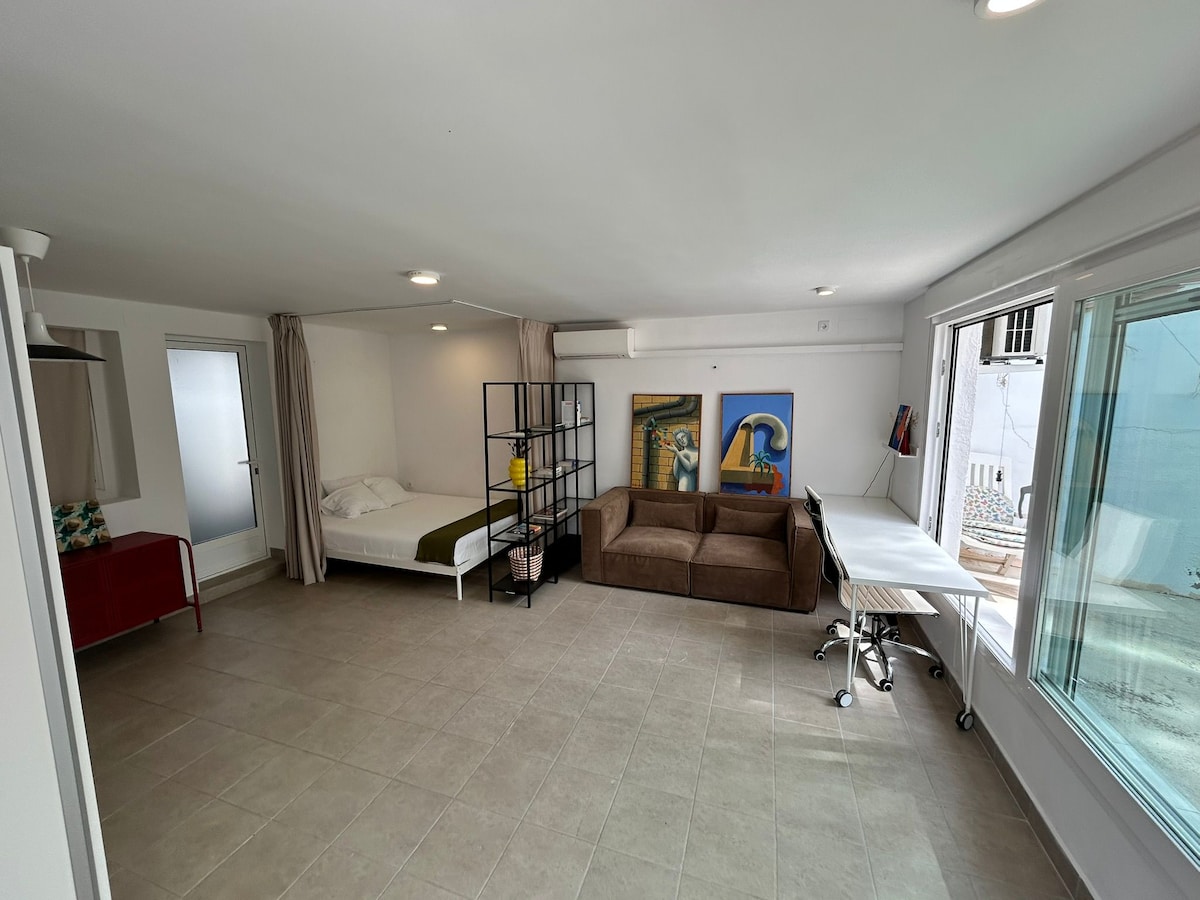 Nice TURIA STUDIO of 32 m2 (2 people) located in Montroy (4 kms from Montserrat): Gym and pool Bed 150 x 200, equipped kitchenette (+barbecue), Nespresso coffee machine, bathroom, separate toilet Local TV, reversible air conditioning Wardrobe, shelves and chest of drawers A terrace in front of the studio allows you to enjoy your meals, and a private pergola to relax View of the pond with fountain, fish and flowering plants See you soon I hope :-) Katy & Philippe