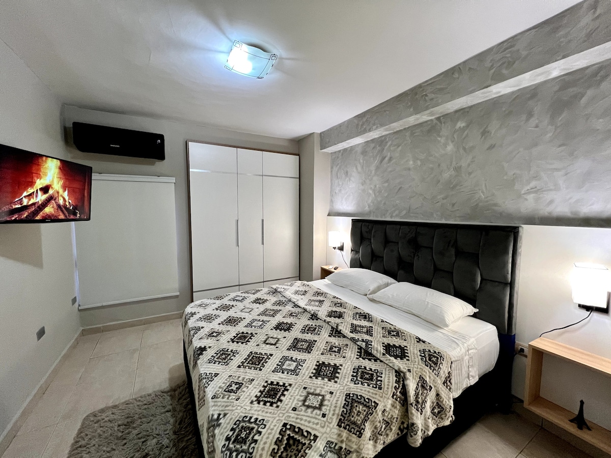 Apartamento 3 habitaciones, todos los espacios con Aire Acondicionado, rejas de seguridad, persianas, 2 baños , wi-fi, diagonal a un centro comercial hay supermercado, gym, farmacia, ferretería, panaderías, licorería, etc. y muy cerca de los principales centros comercies de la ciudad, transporte público y lineas de taxi, parque con caminerías. Está todo amoblado y equipado. 2 puestos de estacionamiento 2 ascensores. vigilancia 24/7, càmaras de video.