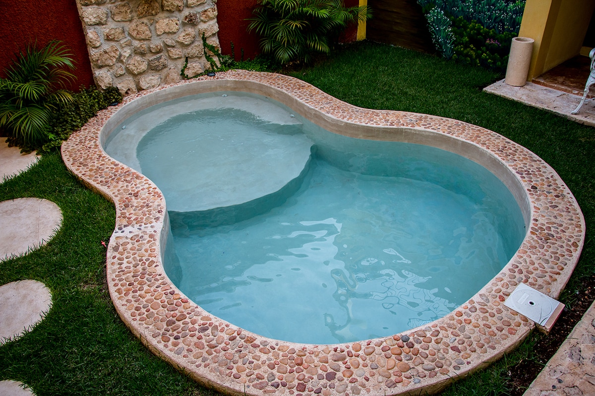 미니 전원주택, 정원, 수영장. 이 중앙 숙소에서 가장 아름다운 세노테에서 단 몇 분 거리에 있어 관광지로 쉽게 이동할 수 있습니다. 메리다나 칸쿤으로 여행하거나 툴룸이나 치헤니즈타를 방문하는 중간 지점. 휴식과 관광을 위한 보안, 가족 또는 커플.