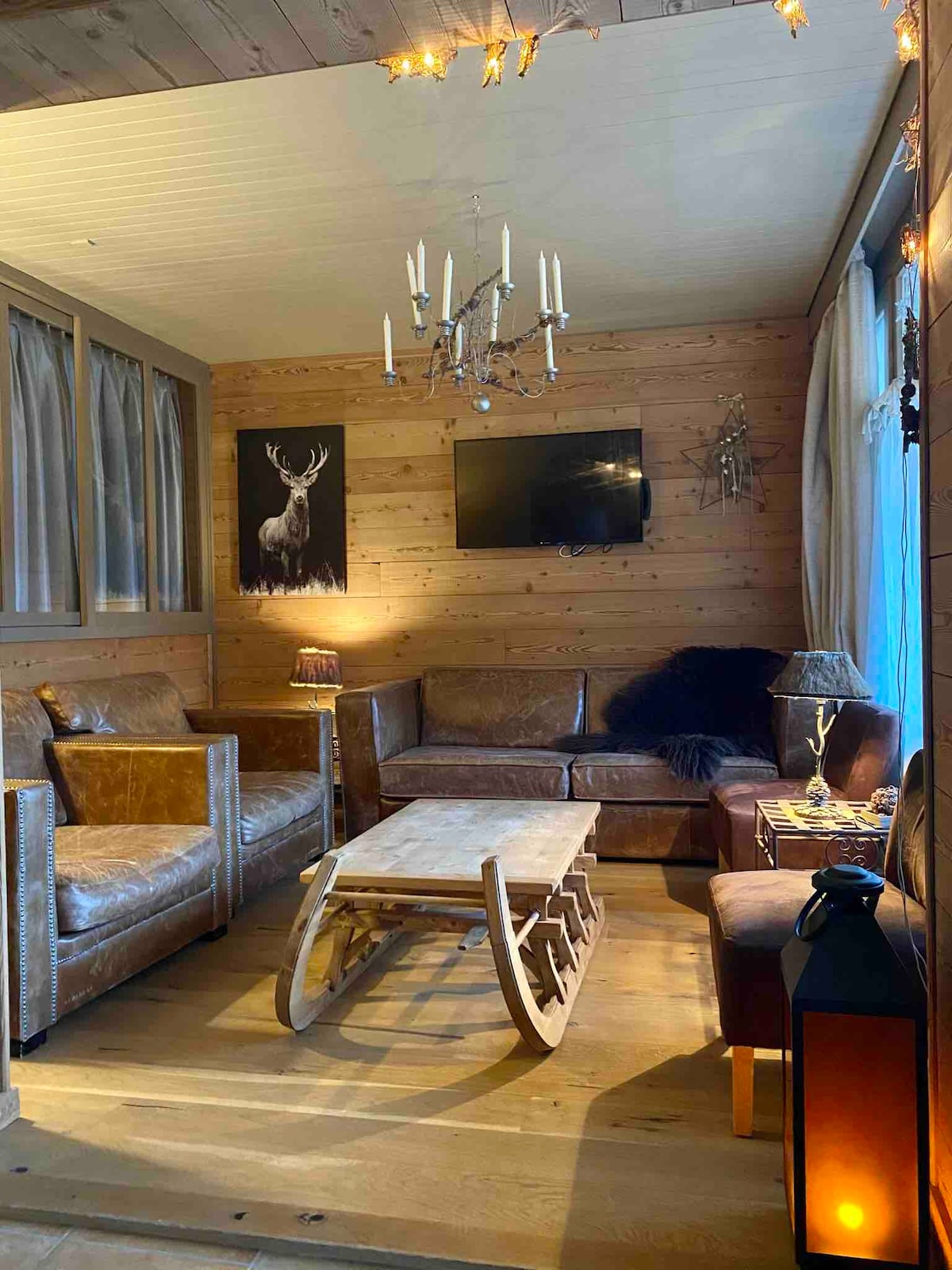 마을과 스키 슬로프 근처에 위치한 리모델링 샬레