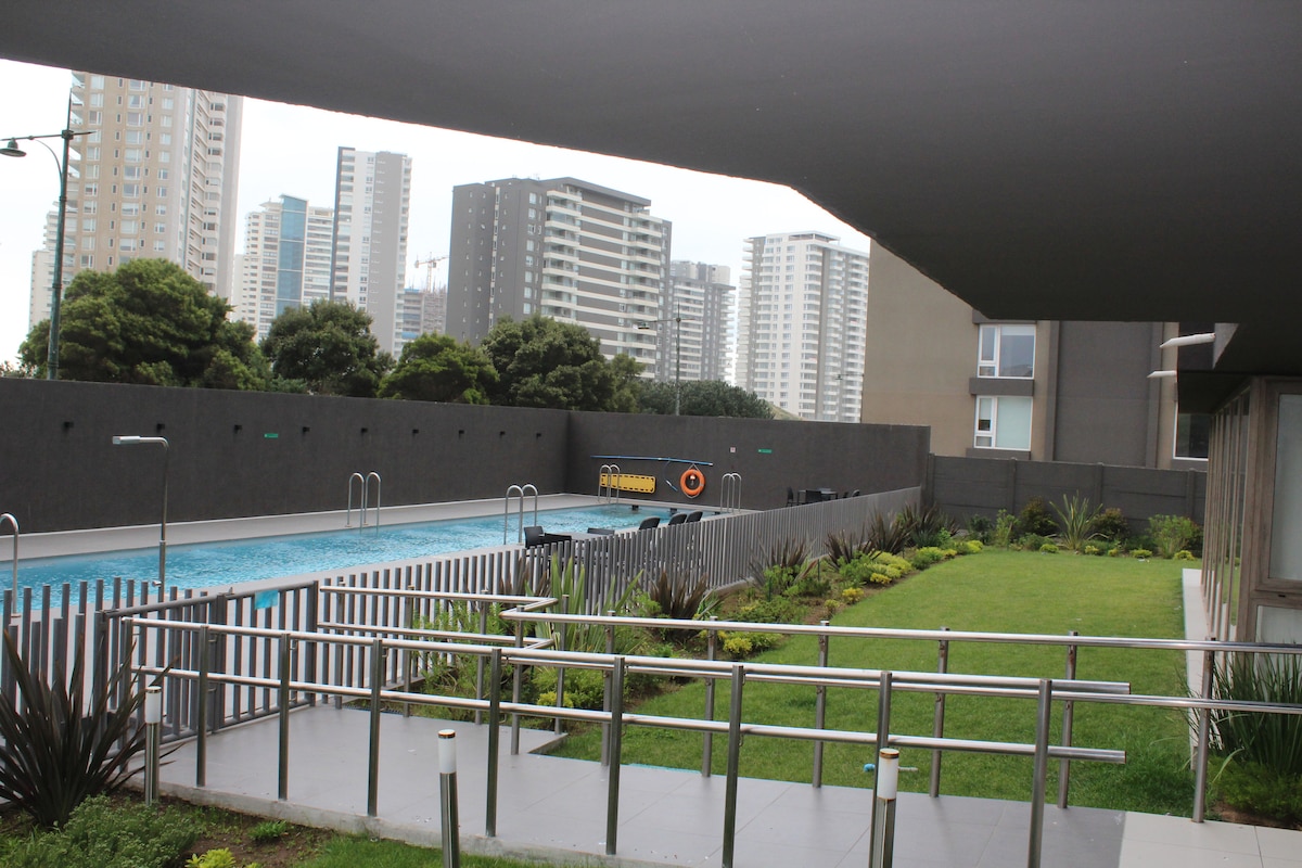 ๋ก์ค ๋ ์ค๋ค์ค (Los Leones) ์งํ์ฒ ๊ณผ ์ฝ์คํ๋ค๋ผ ์ผํฐ (Costanera Center) ๊ทผ์ฒ์ ์๋ ์ฐํฐ์๊ณ ์ ๊ฐ์กฐ๋ ์ํํธ๋ฅผ ๋ง๋๋ณด์ธ์. ๊ฐ์กฑ ์ฌํ์ ์ด์์ ์ธ ์ด ์์๋ ์นจ์ค 3๊ฐ, ์์ค์ด ์๋น๋ ์ฃผ๋ฐฉ, ์์ด์ปจ, ๋ ๊ฐ์ ๋ฉ์ธ ์นจ์ค์ TV๋ฅผ ๊ฐ์ถ๊ณ ์์ต๋๋ค. ์ฃผ์ฐจ ๊ณต๊ฐ (๋ํ ์ฐจ๋์ ์ฃผ์ฐจ๊ฐ ์กฐ๊ธ ์ด๋ ค์ธ ์ ์์) ์ด ํฌํจ๋๋ฉฐ ์๋ฆ๋ต๊ฒ ๋ฆฌ๋ชจ๋ธ๋ง๋ ์ค๋๋ ๊ฑด๋ฌผ์ ์์นํด ์์ต๋๋ค. ์ด๊ณ ์ ์ธํฐ๋ท์ ํตํด ํธ์ํ๊ณ ํธ๋ฆฌํ ์๋ฐ์ ์ ๊ณตํฉ๋๋ค.