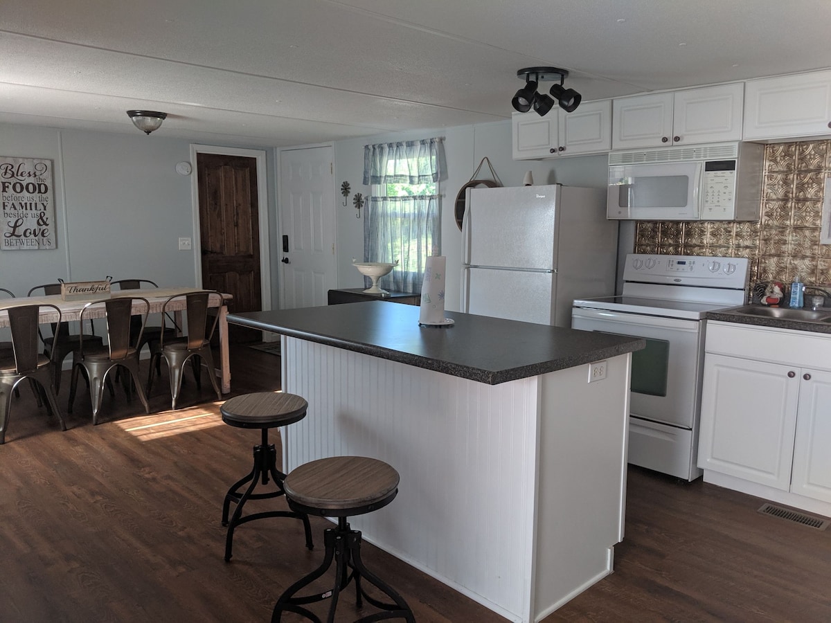 평온한 숙소에서 온 가족이 함께 휴식 시간을 가져보세요. 전자기기를 잠시 멀리 두고 야외 좌석이 넉넉하게 마련되어 있는 곳에서 자연을 즐겨보세요. 아이들과 함께 퍼즐이나 보드게임을 즐겨보세요. 멋진 폴 크리크 폭포 주립공원 입구까지 10마일 미만 거리입니다. 다른 공원도 가깝습니다. 개울과 화덕이 있는 전용 마당. 위층에는 트윈 침대 2개와 트윈 이층 침대가 있는 로프트로 가는 사다리가 있습니다. 사다리 꼭대기에 아기 게이트가 있습니다. 아래층에는 퀸사이즈 침대와 샤워실이 있는 전용 욕실이 있습니다. 안팎 모두 공간이 넓습니다.