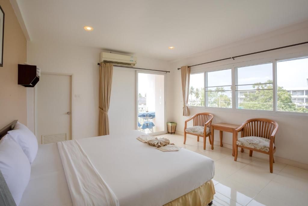 객실은 7층에 있으며 건물 북쪽에 있습니다. 앞면은 바다이고 뒷면은 산입니다. 건물 아래에는 어린이를 위한 커피숍과 카페가 있습니다. 객실 크기: 47.5㎡ 침대 크기: 2인용 킹사이즈 요금: 주중 1박당 2000바트 주말 1박당 2300฿ (조식 서비스는 제공되지 않습니다) 전망을 즐길 수 있는 발코니 테이블이 있습니다.