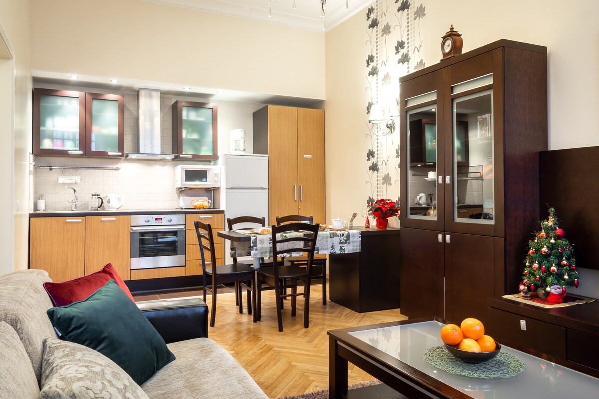 Our cozy apart-hotel is located in the heart of the city and offers brand new apartments with classic interiors, fully equipped kitchens, mini-libraries and even more! We really tried to make sure everything is thought out to the last detail and hope that this combined with our hospitality will make your trip special. Should you have any questions throughout your stay, we're at your disposal. We know restaurants you should visit and places to see.