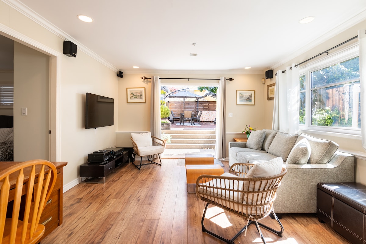 캠비 빌리지의 중심부에 위치한 숙소로 모든 것에 쉽게 접근할 수 있습니다. 커피숍, 레스토랑, 상점 등에서 몇 블록 거리에 있는 조용한 거리에 있습니다. 저희는 중심부에 위치하고 있습니다. YVR에서 기차로 26분, 밴쿠버 시내까지 기차로 15분 거리에 있습니다. 저희는 낮에 활동적인 가족이기 때문에 지하 스위트에서 약간의 소음이 있을 수 있습니다. 숙소 전체가 2019년에 완전히 보수되었습니다. 지하실은 깨끗하고 밝고 넓습니다.