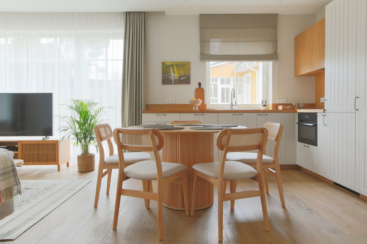 빌라 44는 가족이나 친구와 함께 머무를 수 있는 새롭게 꾸며진 4스위트 숙소로, 드루스키닌카이 시내 중심가에 위치하고 있습니다. 현대적이고 아늑한 가구가 구비된 침실 2개의 60평방미터 아파트에서 프라이버시를 즐기실 수 있으며, 인접한 스위트의 친구들이 항상 근처에 있습니다. 각 스위트에는 정원이 있는 숙소의 안뜰이 내려다보이는 전용 테라스나 넓은 발코니가 있습니다. 숙소 바로 바깥에 전용 주차장이 설치되어 있으며, 전기차를 충전할 수 있습니다. 그럼 곧 뵙겠습니다!