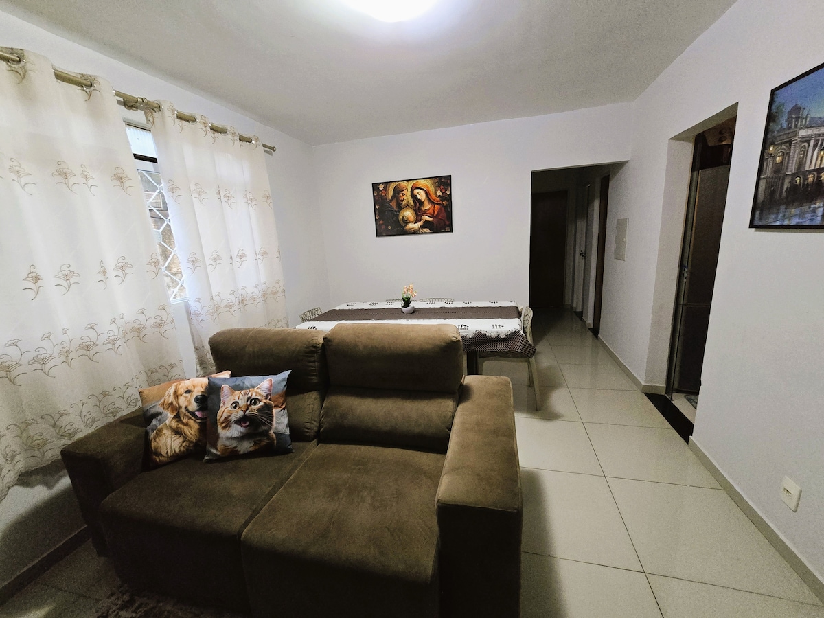 🏡그리고 살기 좋은 아파트!! 1층에 있으며 침실 2개(퀸사이즈 침대 1개 + 싱글 침대 2개), 거실 에어컨 와이파이와 주방 시설 완비🍳. 지붕이 있는 차고가 있으며 🚗 어린이와 휠체어 사용자에게 편리합니다♿👶. 저희는 아레나 판타날, 쇼핑 스테이션, 포르투 페어, 쿠이아바 가든 병원, 종합 병원과 가깝습니다. 유니메드 병원, 센트로 안콜로지코스, 산타로사 병원!!! 집처럼 편안하게 지내실 수 있습니다 💛 아! 밖에서만 흡연 가능합니다.