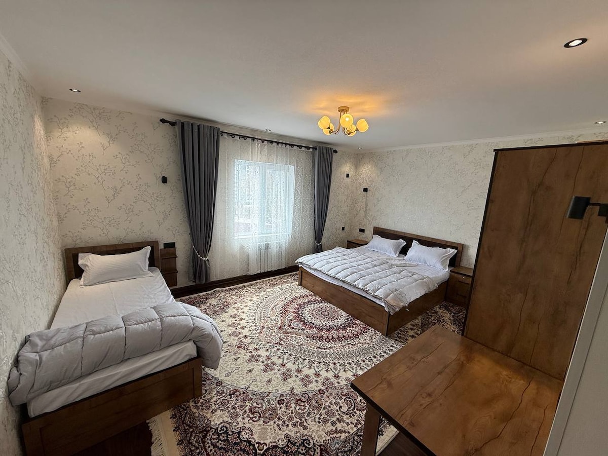 전통적인 타지크 게스트 하우스에 오신 것을 환영합니다. 이곳에서 우리의 관습과 전통을 배우게 됩니다. 이 숙소는 단체 또는 혼자 여행하는 사람들에게 이상적입니다. 직원은 항상 여러분의 서비스에 있습니다. 중요!!! 예약하기 전에 게스트는 저희에게 연락하여 숙박 및 서비스에 대한 장소, 객실 및 기타 문제에 대한 정보를 받아야 합니다. 모국어: 타지크어와 우즈베크어. (러시아어-영어)