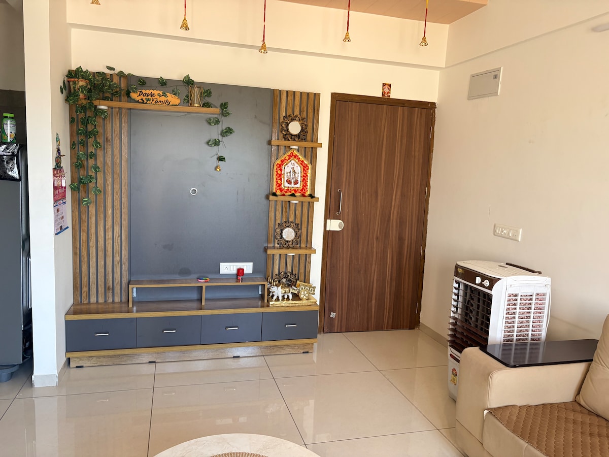🌿🏙️ 아흐메다바드의 넓은 2BHK 아파트(마스터 침실 1개에 에어컨 있음), 1박에서 1주까지의 짧은 숙박에 이상적입니다. 가족, 커플 및 기업 고객에게 완벽합니다. 아흐메다바드 나롤에 위치하고 있으며, 바트바, 이산푸르, 마니나가르와 원활하게 연결되며 아흐메다바드 공항에서 약 20km 거리에 있습니다. 통풍이 잘 되는 객실, 자연 채광, 바닥 스타일의 침구, 평화롭고 깔끔한 구조를 즐겨보세요. 호텔 대신 편안하게 머물 수 있는 숙소입니다. 원격으로 관리되어 셀프 체크인이 용이하고 완벽한 프라이버시를 제공합니다.