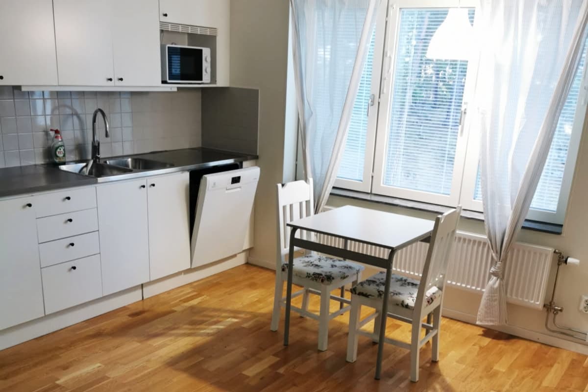 Basement apartment in villa, with own entrance. In the center of Björklinge (20 km north of Uppsala) you will find this basement apartment in a villa with the best location, free parking and charging box. We welcome dogs, but have to refuse cats due to allergies.