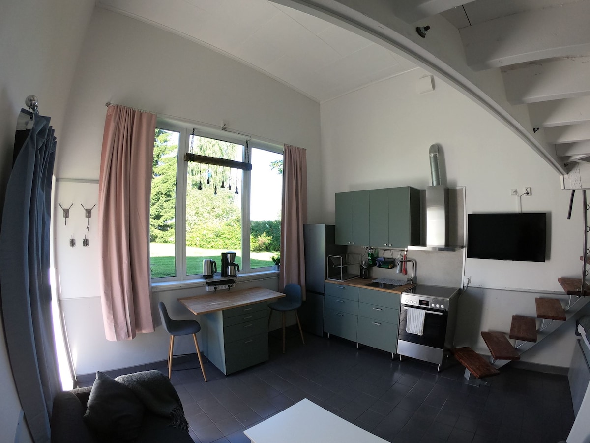 스웨덴의 자연과 이 완비된 휴식을 즐기며 편안한 휴식을 취하십시오. 자연의 아름다움 속에 위치한 이 평화로운 숙소는 스켈레프테오 C에서 20분 거리에 있습니다. 스튜디오에는 TV, 식당, 주방(조리 공간), 욕실 및 전용 사우나와 같은 모든 편의시설이 있습니다. 이것이 충분하지 않은 경우, 농장에 장작 사우나와 야외 샤워시설을 무료로 빌릴 수 있습니다. 오두막에서 바로 시작되는 숲길은 강변을 따라 수영장, 운동 트레일, 놀이터, 축구장, 테니스 코트로 이어집니다.