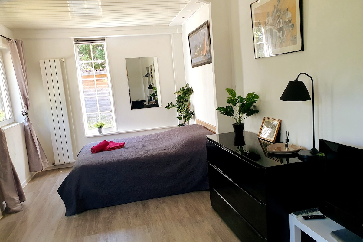 Maisonnette de 40m2 indรฉpendante et entiรจrement รฉquipรฉe, idรฉal pour sรฉjour professionnel ou loisirs. Classรฉe meublรฉ de tourisme 3 * Entrรฉe privรฉe, calme absolu, jardin et terrasse. Accรจs rapide au centre de Lyon, Eurexpo, aรฉroport, Groupama Stadium et LDLC Arena (mรฉtro/tram La Soie ร 15 min ร pied ou 5 min en bus). Stationnement gratuit dans la rue commerces accessibles ร pied. Parfait pour missions, formations ou dรฉplacements temporaires.
