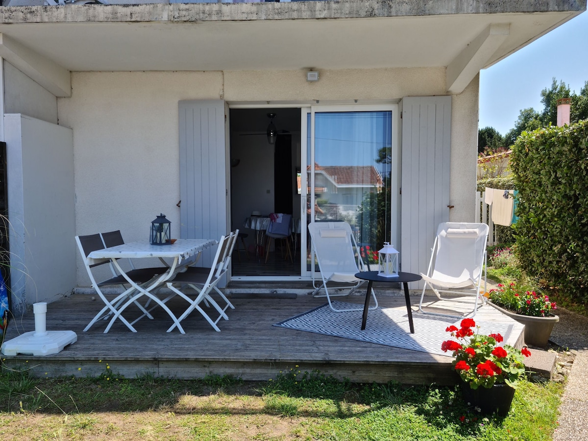 차분하고 중앙 지구에 있는 세인트 팔레와 나우잔의 해변에서 가깝고 멋지게 꾸며진 예쁜 스튜디오 (수영장이 있는 레지던스). 차분하고 중앙 지구에 있는 세인트 팔레와 나우잔의 해변에서 가깝고 밝습니다. 모든 편안함: 거실 (훌륭한 벽 침대 매트리스, 소파, TV), 간이 주방 (식기 세척기, 세탁기, 호브, 냉장고, 전자레인지, 커피 메이커, 주전자, 플랜차) 욕실 (샤워, 전기 타월 레일 있음), WC 분리형, 작은 정원 폐쇄 및 스포츠 (데크 의자 포함). 시트와 수건도 요청하세요.