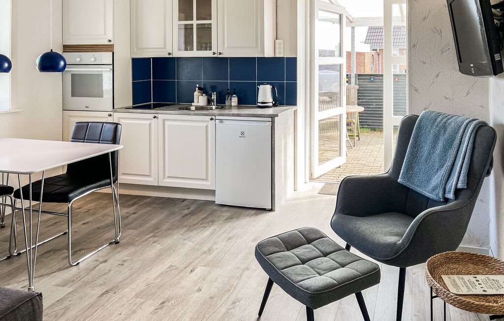 이 여름 별장에는 10명이 머물 수 있는 넉넉한 공간이 마련되어 있으며, 잘 갖춰진 넓은 주방과 패밀리 룸이 있습니다. 주방과 패밀리룸에서 숙소의 넓은 테라스로 바로 걸어 나갈 수 있습니다. 수영장에는 26m2의 수영장, 사우나, 스탠드워터 스파가 있습니다. 방은 멋지게 가구가 배치되어 있고, 천장이 기울어져 있어 앉아서 즐기기에 정말 좋습니다. 이 숙소에는 침실 5개와 바닥 난방이 있는 사랑스러운 욕실 2개가 있습니다. 블라반드 등대의 멋진 전망을 감상할 수 있는 거실.