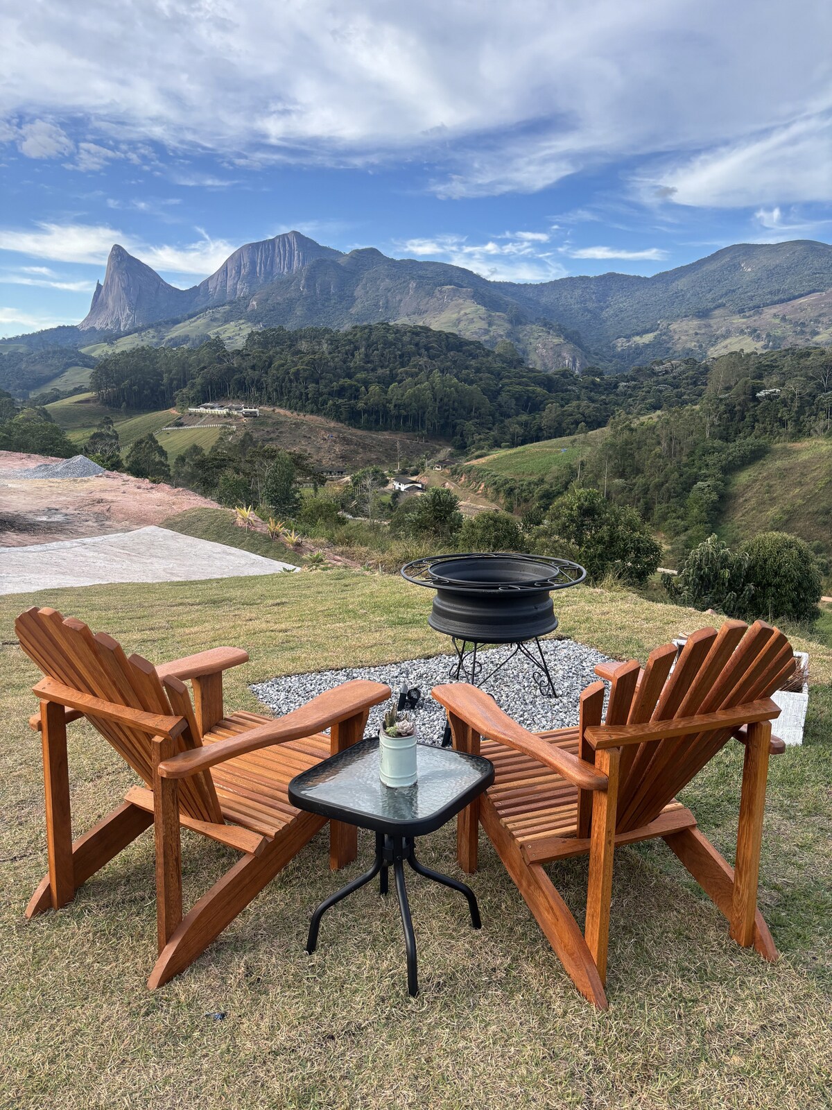 Respire o ar puro das montanhas capixabas com uma vista incrível da Pedra Azul. Viva uma aventura em uma casa em madeira de reflorestamento com todo o conforto e sossego que você merece. No entardecer, desfrute do deck enquanto assiste ao espetáculo de mudança de cores da Pedra Azul. Da banheira de imersão vislumbre a Pedra Azul de um lado e o Pico de Forno Grande de outro. Aquecimento de água, cooktop de indução, geladeira com congelador, natureza pra todos os lados e muito mais.