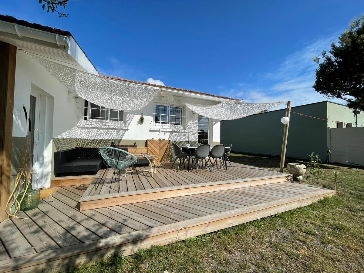 Welcome to your perfect vacation home in Montalivet :) a relaxed, sun-soaked retreat ideal for families or friends. This charming vintage house is designed for laid-back living, just 500 m from the ocean and the vibrant market. Unwind in a private 600 m² fully fenced garden packed with everything you need for summer fun: a BBQ, surfboards, hammock, sunshades, sunny terrace. The house has all the right vibes for an unforgettable holiday in Monta !