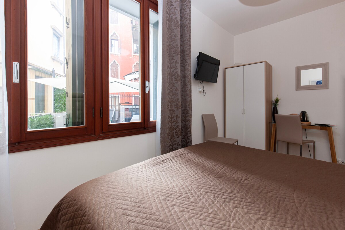 베네치아의 "산타 루치아" 기차역 옆에 위치한 현대적인 스타일의 더블룸. 모든 객실에는 전용 욕실, 와이파이, TV, 에어컨 및 기타 모든 편의시설이 있어 편안한 숙박을 보장합니다. 현지 도시세(1인당 1박당 3유로)는 객실 요금에 포함되어 있지 않으며 도착 시 현금으로 결제하셔야 합니다. 체크인은 16시부터 19시까지입니다(19시부터 21시까지는 추가 요금이 부과되며, 21시 이후에는 체크인 불가, 셀프 체크인 불가). 현지 도시세(1인당 1박에 3유로)는 포함되어 있지 않으며 체크인 시 현금으로 결제하셔야 합니다.