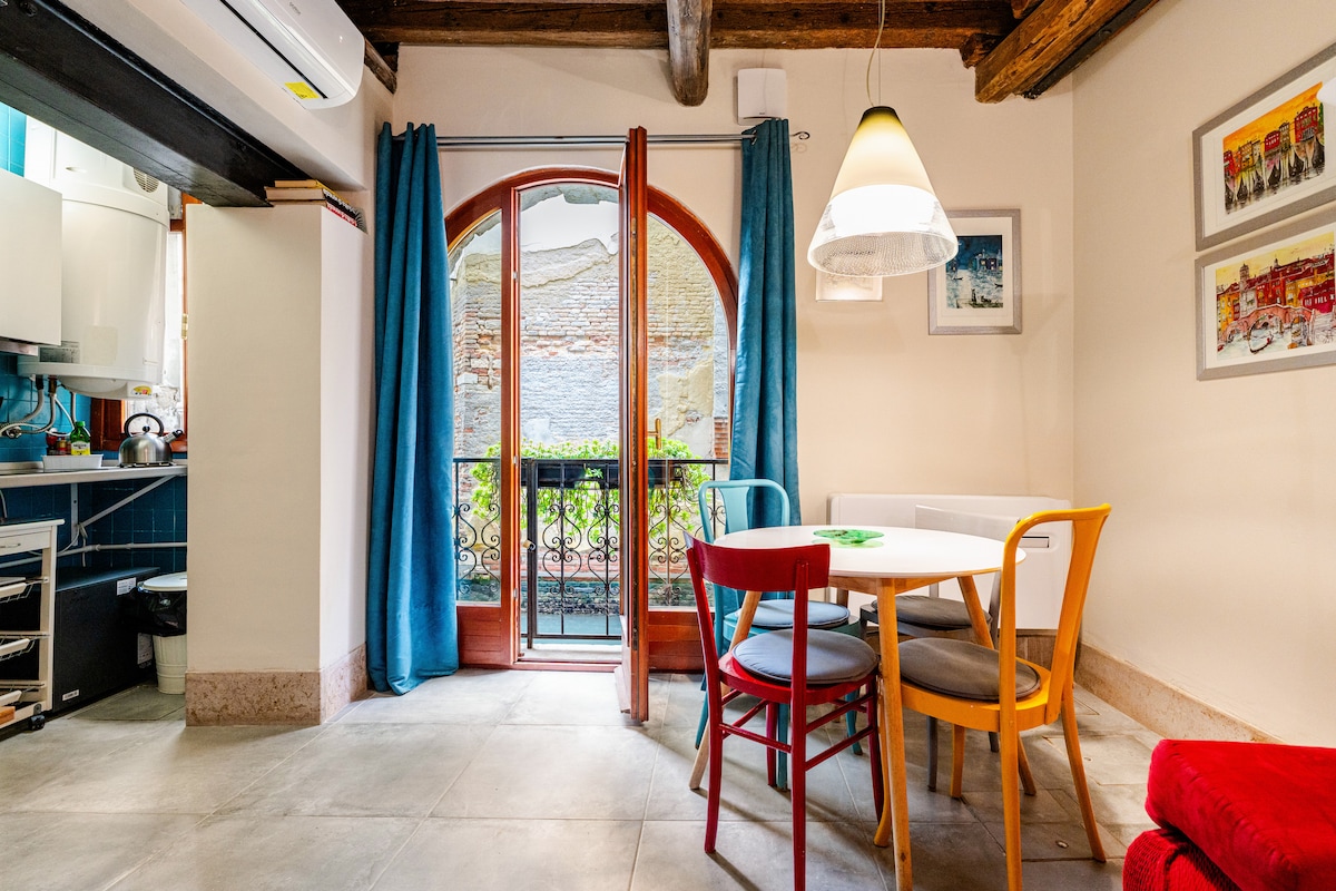 저희 플랫은 디자인 아트와 현대 미술을 사랑하는 사람들을 위한 곳으로, '곤돌라'를 볼 수 있는 발코니가 있으며, 30분 안에 공항으로 데려다 줄 주황색 선을 탈 수 있는 바포레토 정류장과 정말 가깝습니다. 근처에 위치한 다른 새로운 아파트도 확인해 보세요. https://www.airbnb.it/rooms/22159772