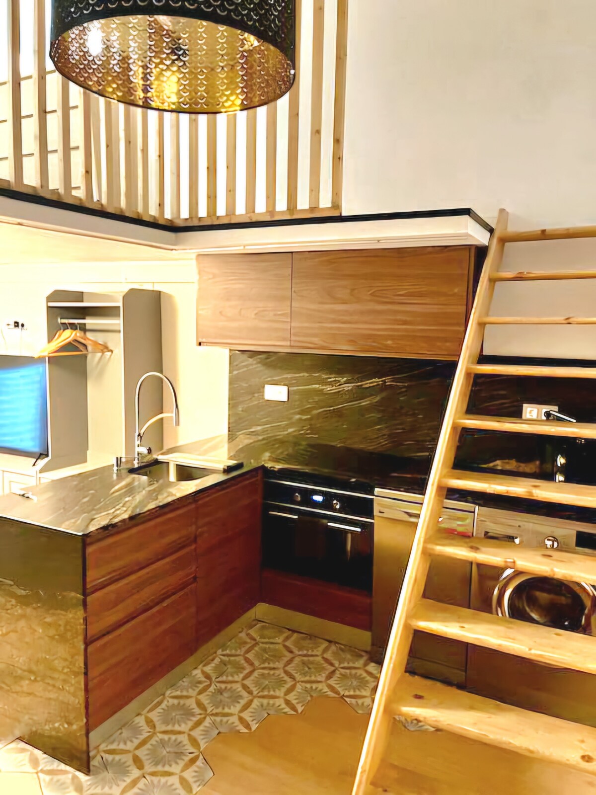 Totally refurbished loft with modern features but with a cosy feeling. The outdoor patio is very rare to find in central Madrid. Spacious layout and very high ceiling. Double glazing, individual gas heating, kitchen fully equipped .Double good mattress bed. Is very quiet. You don’t hear a noise despite being at one of the trendiest area, full of restaurants shops and fashionable bars. Temporary rental for non-tourist purposes. Online registration and contract signing are mandatory.