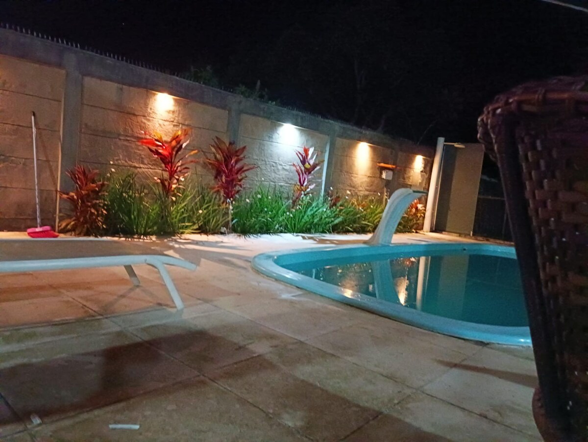 파라이소 페 나 아레아, 수영장 2개, 트램펄린과 집라인 놀이터, 게이티드 커뮤니티, 24시간 보안, 대가족, 노인과 어린이에게 이상적, 침실 9개, 스위트룸 8개, 데미 스위트룸 2개, 모두 에어컨 구비, 성인과 어린이를 합해 최대 20명까지 수용 가능, 1인당 1박에 150레알 이상. 반려동물과 시끄러운 소음은 허용되지 않습니다. 침구와 목욕 수건은 문의하시기 바랍니다. 물과 빛은 소비에 따라 부품을 지불했습니다. Caução 150 reais day는 일수와 인원에 따라 다릅니다.
