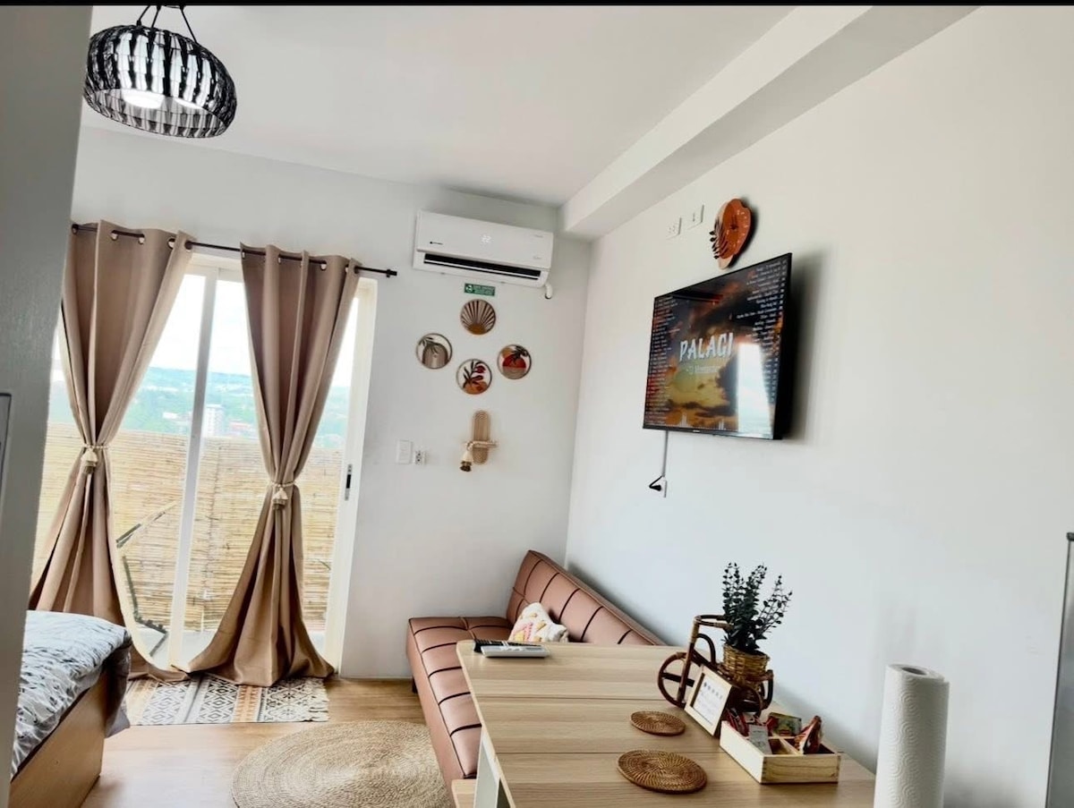 Experience modern living in our stylish 1BR apartment. This unit features a spacious layout with ample natural light, a fully-equipped kitchen and a cozy living area. The bedroom offers a comfortable queen-sized bed with pull-out and ample storage. Enjoy the convenience of in-unit laundry and high-speed internet. Located next to Abreeza, you'll have easy access to public transportation, shopping, and dining. Perfect for both short and long-term stays, this unit is your ideal home away from home.