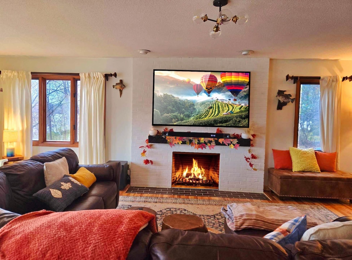 커다란 호숫가 주택! 12명 수면 가능! 침실 5개, 욕실 4개 + 게임룸.