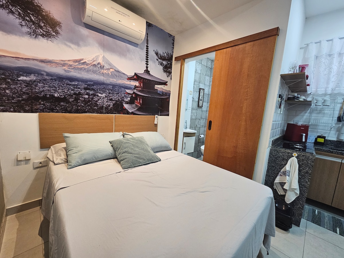 Kitnet 111 ar cond, roupas cama, tv frigobar wifi