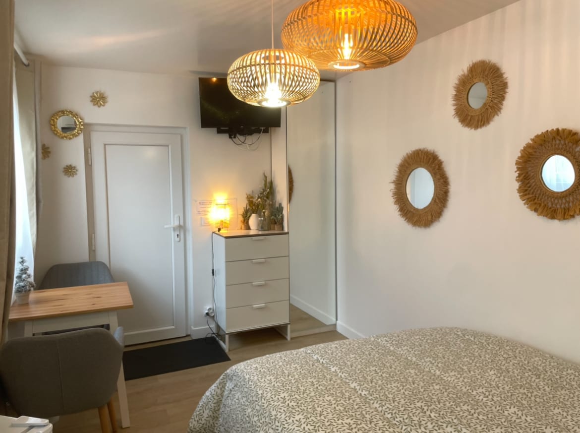 Studio dans dépendance avec jardin, située dans un quartier très calme. Idéal pour un séjour détente,un voyage d’affaires et un endroit pour le télétravail.