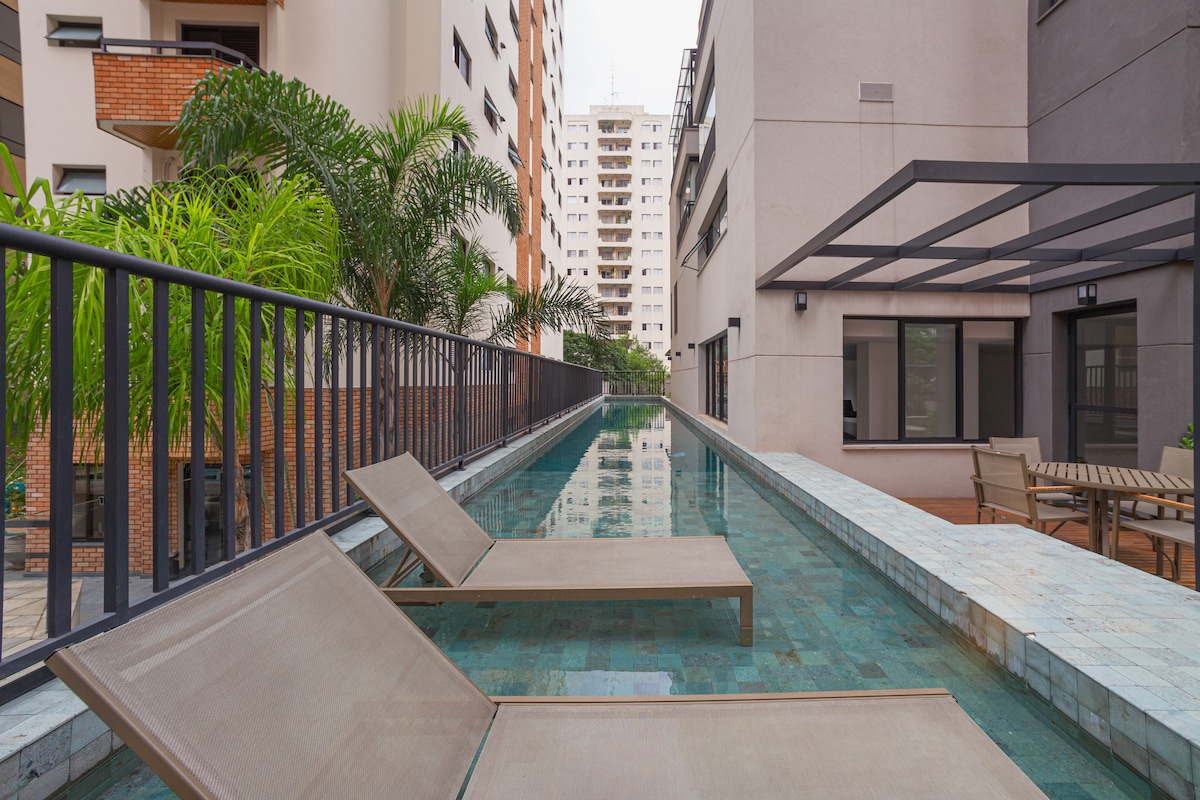 위치가 훌륭한 숙소 고급스럽고 트렌디한 지역 유명한 R에서 몇 미터 거리에 있습니다. 오스카 프레이레와 세련된 CJ 상점은 도시 최고의 레스토랑, 바, 약국, 뷰티 살롱, 공원으로 둘러싸여 있습니다. 하루를 고요하게 만들어주는 녹색의 감각으로 탁 트인 전망을 즐겨보세요. 이 거리는 안전하고 조용한 것으로 알려져 있어 편안함과 평화를 보장합니다. * 초고속 와이파이 및 넷플릭스 이용 가능. • 중요: 저희는 호텔이 아닙니다.