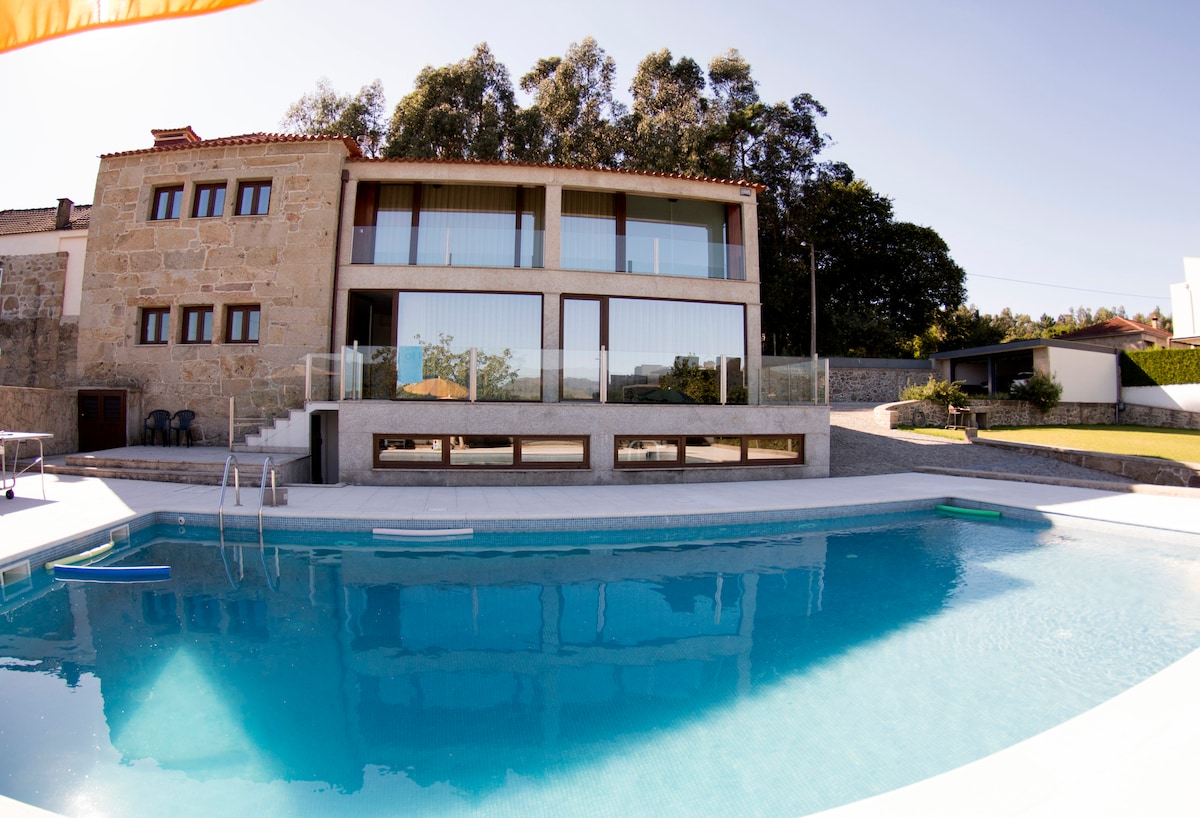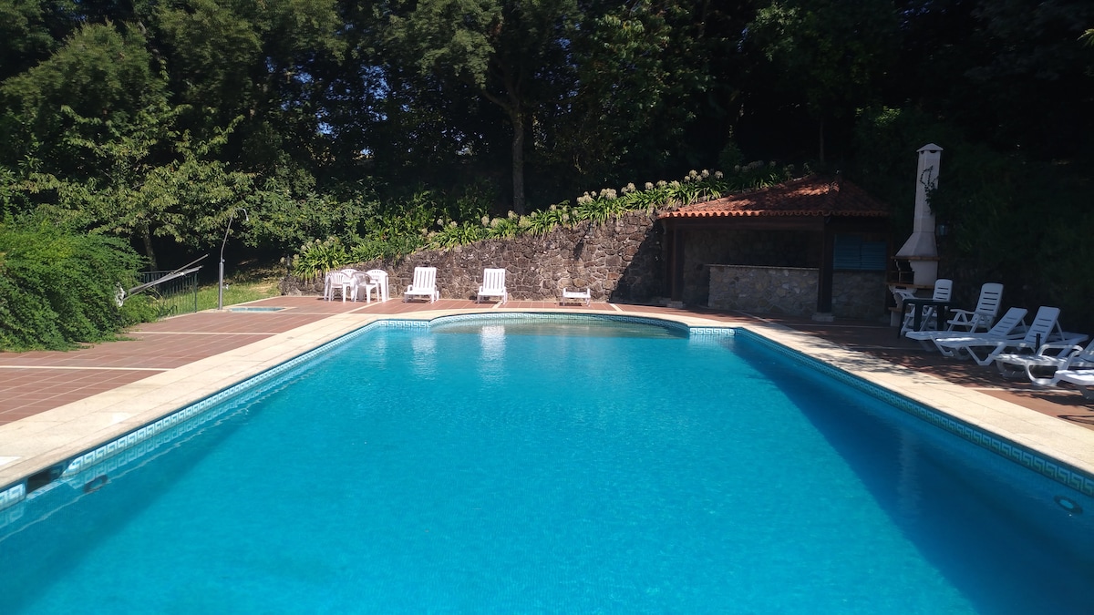 걱정은 잊고, 숨 막히는 전망과 완벽한 프라이버시로 자연 한가운데에서 며칠 동안 휴식을 취하세요. 가족 모임에 이상적이며, 대형 수영장, 자쿠지, 축구장, 조경 공간을 즐기고 야외 난로에서 몸을 녹이며 석양을 감상할 수 있습니다. 폰테 데 리마 마을, 빌라 베르데, 브라가, 페네다 게레스 국립공원 근처. 무료 와이파이, 케이블 TV, 에어컨, 난방, 무료 주차장이 있는 숙소입니다.