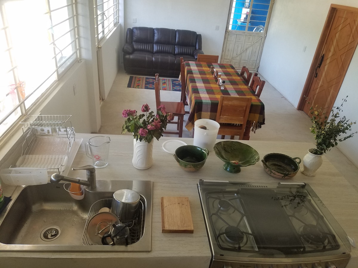 2 ~ 5명을 수용할 수 있는 모든 서비스가 갖춰진 숙소로, 완전한 프라이버시와 게스트를 위한 독점적인 공간을 제공합니다. 숙소 내부에 최대 3대의 차량을 주차할 수 있는 충분한 공간이 있습니다. 숙소는 틀라콜루라의 최고의 지역 중 한 곳에 위치하고 있습니다. 궁금한 점이 있으면 호스트에게 메시지를 보내주세요. 문제없이 질문에 답변해 드리겠습니다!